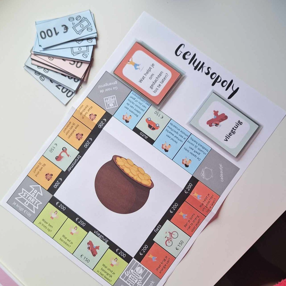 - De leerlingen beschrijven de geluksdriehoek aan de hand van de bouwstenen uit het spel.